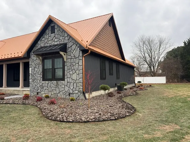 Installation of decorative stone, river rock and professional edging to create clean, low maintenance landscape beds